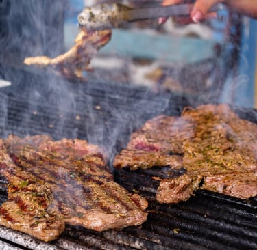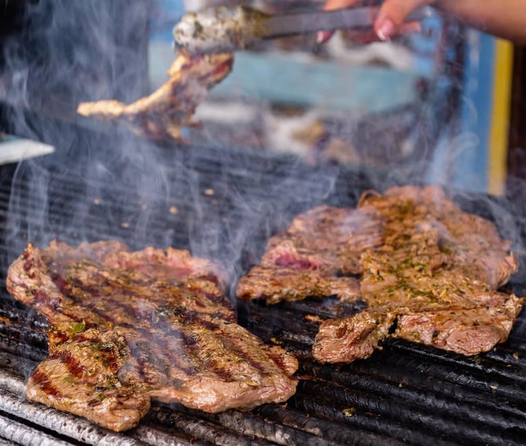 Sentir el calor de la brasa es parte de la experiencia. Ofrecemos cortes premium como el Churrasco y el Solomo de Res, asados a la perfección para resaltar su sabor natural.