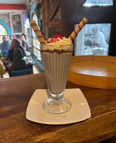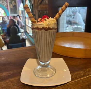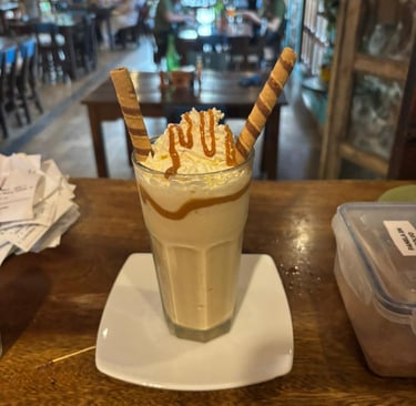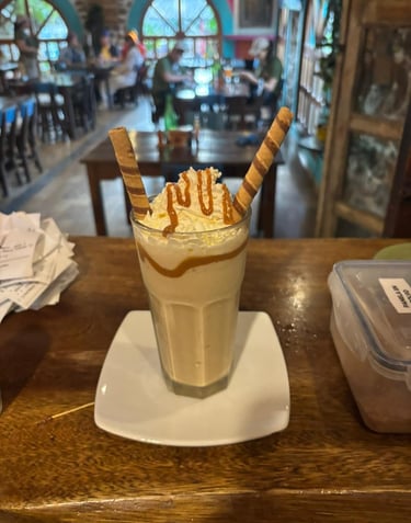 El descanso perfecto para el viajero. Amplia variedad de cafés (Expreso, Capuchino, Café Arriero), malteadas, granizados y postres tradicionales como el Brownie con helado y la ensalada de frutas.