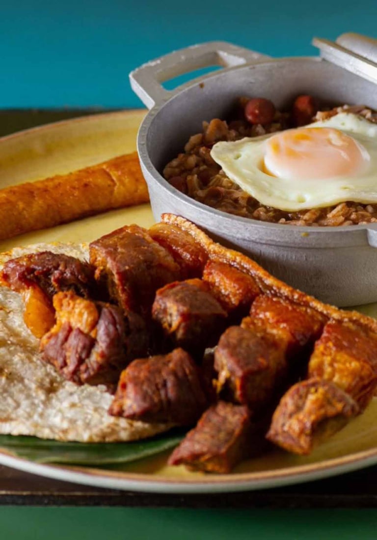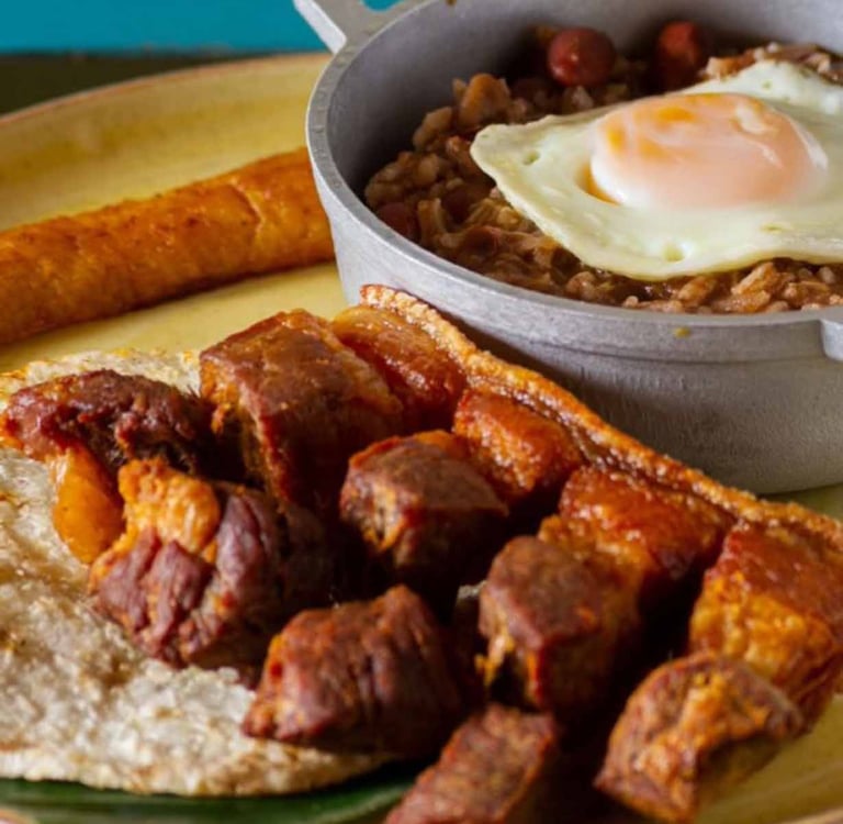 Desde la generosa Bandeja Paisa hasta nuestras famosas cazuelas. No puedes irte sin probar el Chorizo Santarrosano o nuestra sobrebarriga en salsa, platos diseñados para satisfacer los paladares más exigentes.